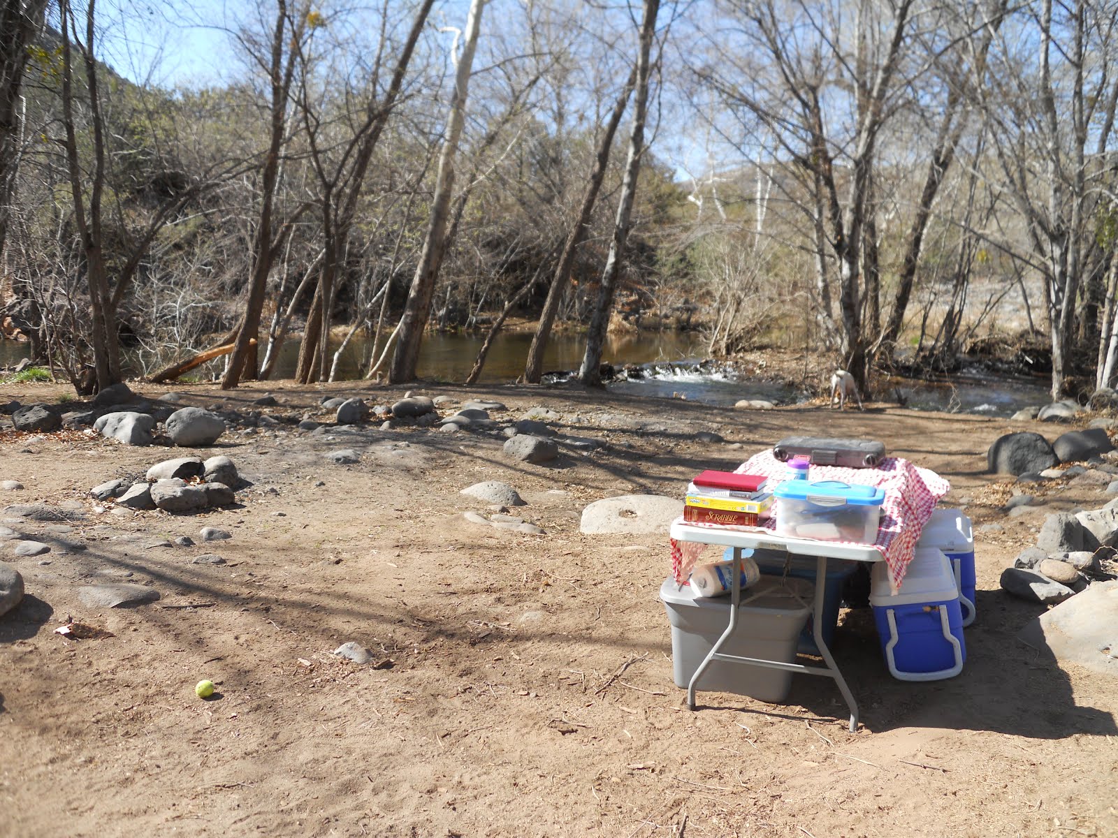 A few weekends ago Heith and I went camping at West Clear Creek. It was so pretty. We left early Saturday morning and headed up north. We found a great little spot to ourselves so T-bone could run around and not bother anyone and we could have some of our own privacy. The creek was so clear and pretty and the weather was so nice. It was in the 60's during the day. If it was hotter outside I would have gone in the creek. The spot we were at had little rapids in the creek which made it quite peaceful sounding. We hiked up the creek a good 3 miles or so to try out some other fishing spots but no luck at catching any. T-bone had a blast. Heith and I had so much fun together just the two of us. I can't remember laughing so much in a while. We played frisbee, scrabble, and read books. We also took a couple of our guns and went shooting. Man, was I rusty! But by the end I picked it up again. Heith is such an out doorsman, and I love watching him get excited about fishing and going on trips like this with me and our family some day.